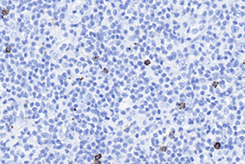 ALK+ ALCL can demonstrate several different histological patterns. The "classic" pattern is the most common (approximately 60% of cases) in which large pleomorphic cells predominate. Other less common patterns include lymphohistiocytic (10%), Hodgkin's like (3%), small cell (5-10%) or composite patterns. The case presented above is an example of small cell pattern. There is a diffuse proliferation of mostly small to medium cells, with some showing a moderate amount of pale cytoplasm. In this case, most cells are CD4 positive and a subset (medium and few large cells) strongly express CD30 and ALK. It is important to note that hallmark cells may be absent in the small cell variant of ALCL. Therefore, immunohistochemistry for ALK will be crucial as diagnosis will be challenging without ALK staining. The small cells may be weak or negative for CD30 (as we can see in a subset in the CD30 photomicrograph above). Together with the negative PD1 and positive cytotoxic markers, the immunophenotype in this case is consistent with ALK+ ALCL.