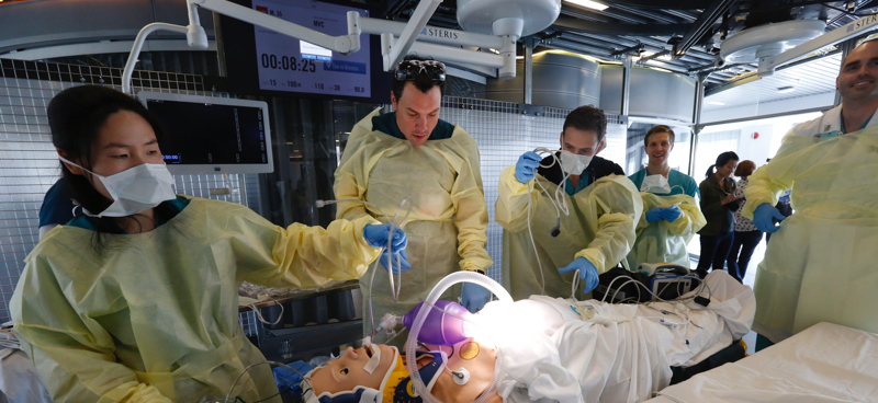 The Women's Guild Simulation Center for Advanced Clinical Skills is an immersive environment equipped with the latest in patient simulators and medical devices. The center replicates the reality of professionals working together, performing different roles and using the latest technology within our system. Multi-professional clinical skills development, teamwork, improving communication and, ultimately, patient safety are at the heart of the center's ethos. This proactive approach helps Cedars-Sinai provide the best possible care to patients and provides staff with the latest in educational technology.