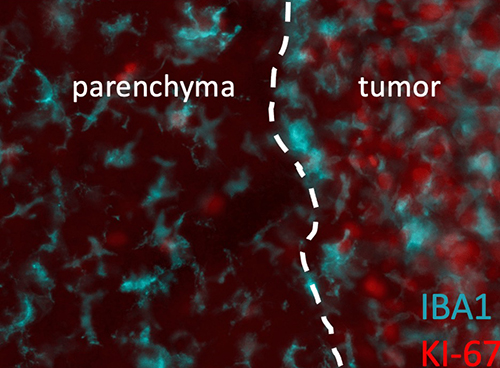 Microglia (Iba1+CD11b+) are the macrophage of the central nervous system and likely serve the same functions as peripheral macrophages, however little is known about their ability to regulate the response to therapy in brain tumors. Immunotherapy to date has been disappointing in the treatment of primary brain tumors with limited responses and we are curious to explore the role of microglia in regulating anti-tumor immunity within the brain. Partnering with the laboratory of Joshua Breunig, we are working on developing unique models of adult gliomas in mice in order to study the impact of microglia on treatment and discover microglia-based targets that can be harnessed to improve the response to standard therapies (radiation and temozolomide) in combination with immunotherapy.